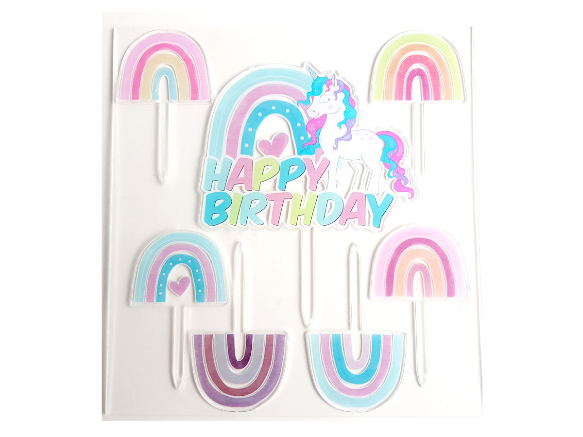 Einstecker für eine Torte mit dem Motiv Einhorn. In der Packung 7 Stück.
