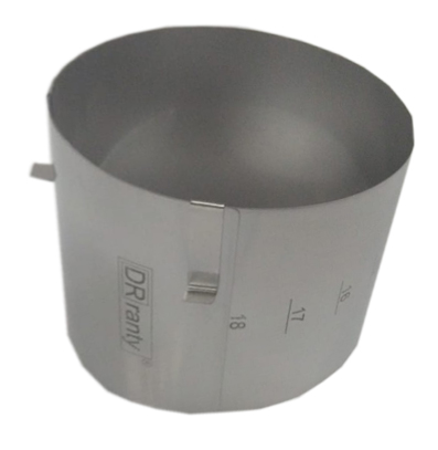 Runder einstellbare Form zum Kuchenform. Einstellbarer Rand der Form mit Durchmesser 15 - 21 cm. Hat eine praktische Skala (je 1 cm), dank der Sie den gewünschten Durchmesser des Teigs genau einstellen können. 14 cm hoch. Hergestellt aus widerstandsfähigem und dehnungsresistentem Edelstahl mit Zertifikat. Das Set enthält zwei Montagespangen. Die Zuckerbäcker-Rundform ist eine Alternative zu traditionellen Backblechen zum Backen. Im Gegensatz dazu ist sie viel funktionaler, da sie beliebig angepasst werden kann. Die Verwendung eines Rahmens erleichtert nebenbei das Fehlen eines Bodens und zwei an das Set befestigte Spanner, die dazu dienen, die Seiten zu befestigen. Es reicht aus, Papier zum Backen oder Pergament auf jeder Oberfläche zu legen, darauf die einstellbare Kante zu setzen und dann die Masse hineinzugeben. Nach dem Herausnehmen aus dem Ofen behält das Gebäck seine perfekte Form. Außerdem lässt es sich leichter in Portionen teilen als Süßigkeiten auf dem herkömmlichen Backblech.