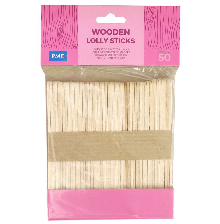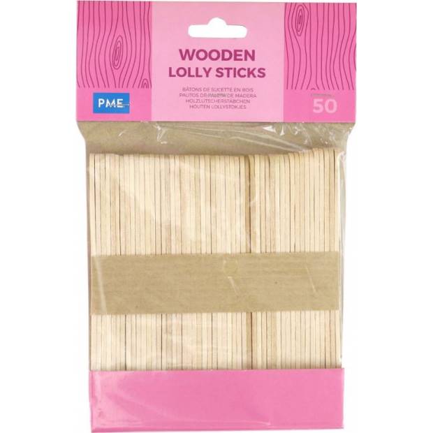 Stiele für Eis am Stiel von PME werden aus Holz hergestellt, das gesundheitlich unbedenklich und behandelt ist, um Splitterverletzungen oder andere unbeabsichtigte Verletzungen zu verhindern. Sie sind für den Einmalgebrauch bestimmt. In der Packung 50 Stiele. Länge 11 cm.