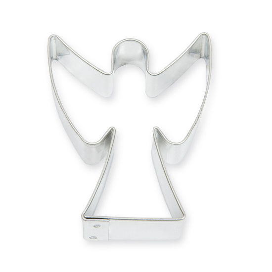 Ausstechform für Plätzchen in Form eines Engels, hergestellt aus lebensmittelechtem verzinnendem Blech. Die scharfe Unterkante der Ausstechform gewährleistet perfekt glatte Kanten der ausgestochenen Form. Abmessungen: Höhe: 10,5 cm, Breite: 8,5 cm