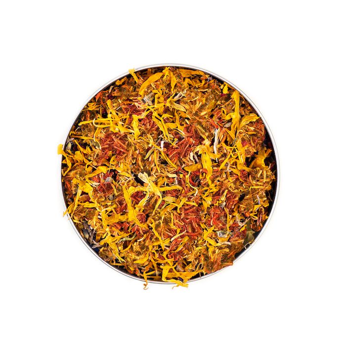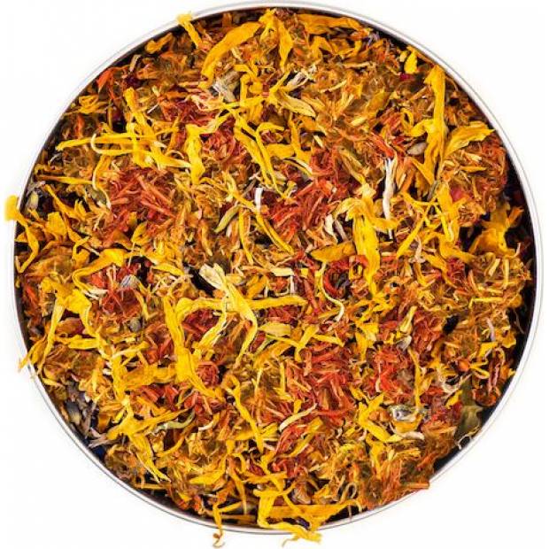 Rosenblütenblätter, Kornblumenblätter, Lavendelblüten, Malvenblüten.