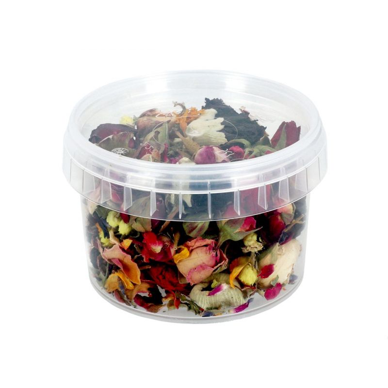 Ringelblume, Rosenknospen, Rotkleeblüten, Granatapfelblüten, Zitronenverbene, Zwerggeißblatt.