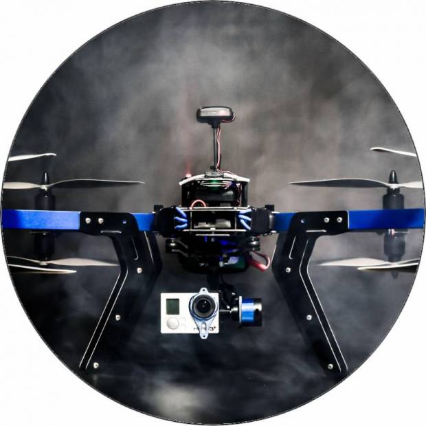 Essbares Papier fliegende Drohne auf schwarzem Hintergrund 19,5 cm