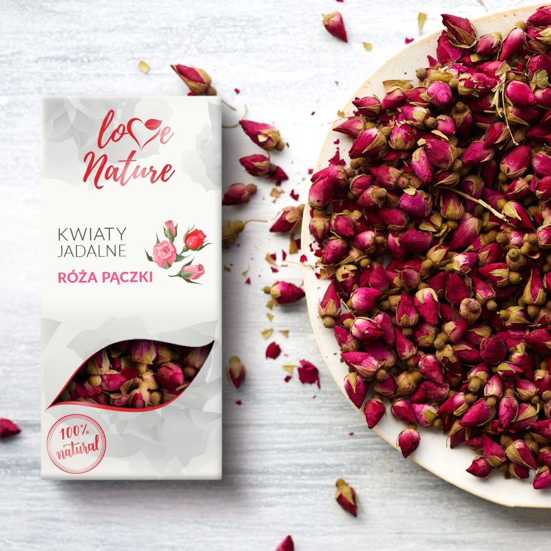 Trockene Pflanzen in hochwertiger Premiumqualität, hergestellt in Polen von einem Produzenten. Getrocknete Blüten und Früchte zeichnen sich durch natürlichen und angenehmen Geschmack und Duft aus. Je nach Sorte eignen sich essbare Blüten hervorragend als Ergänzung zu Aufgüssen und Getränken, aber auch zu Speisen und Salaten. Getrocknete Blüten sind eine ideale Möglichkeit, Salziges wie Süßes schnell, natürlich und effektiv zu schmücken. Am häufigsten werden sie zum Dekorieren von Kuchen und Cremes hergestellt. Es sind „Produkte, die mit Zuneigung zu Blüten, Geschmack und Farben geschaffen wurden.“