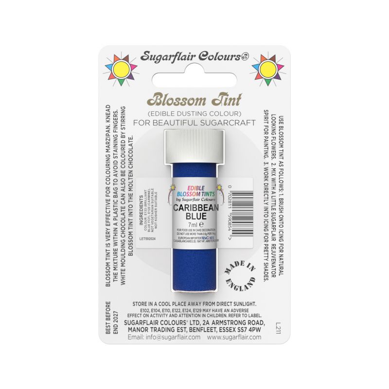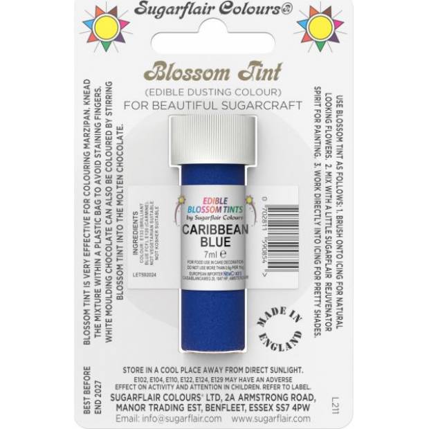 Essbare Staubfarbe Caribbean Blue. Verpackung 7 ml.
