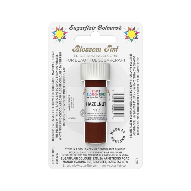 Essbare Staubfarbe Haselnuss. Verpackung 7 ml.