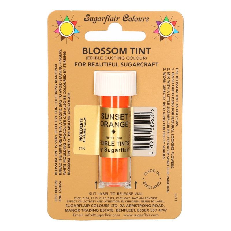 Es handelt sich um glitzernde Farben, die auf drei Arten verwendet werden können. Ihre Hauptanwendung ist die Verzierung von Süßigkeiten und insbesondere von Blumen. Sie können auch direkt in den Zuckerteig eingemischt werden, aber mit geringerer Wirkung im Vergleich zu Gel-Farben. Das Auftragen mit einem Pinsel auf Zuckerblüten verleiht wirklich realistischer Look oder färbt die Oberfläche vollständig ein bzw. betont sie. Glitzernde Farbe kann auch zum Färben von Zuckerteig, Royal Icing und weißer Schokolade verwendet werden. Alle Sugarflair-Farben werden aus essbaren Rohstoffen hergestellt, die den EHS-Vorschriften entsprechen und den Status koscher haben.