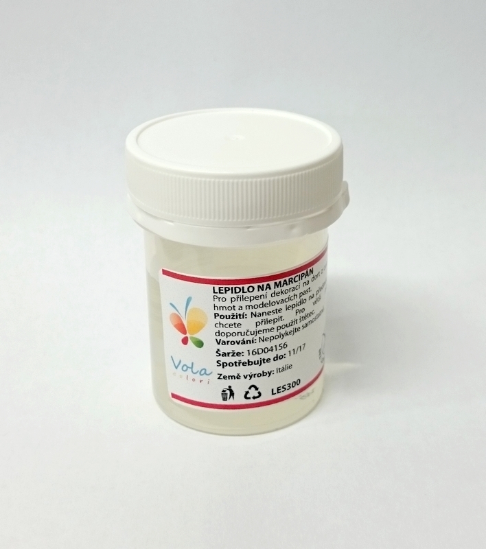 Esskleber überwiegend zum Befestigen von Marzipan. Der Kleber genügt, um die Stelle, die Sie befestigen möchten, mit einem Pinsel zu bestreichen. Mit diesem Kleber wird jede Dekoration auf Ihrer Torte haften. Zusammensetzung: Wasser; Emulgator E466, Säureregulator E330, Konservierungsstoff E202. Inhalt der Packung 25 g.
