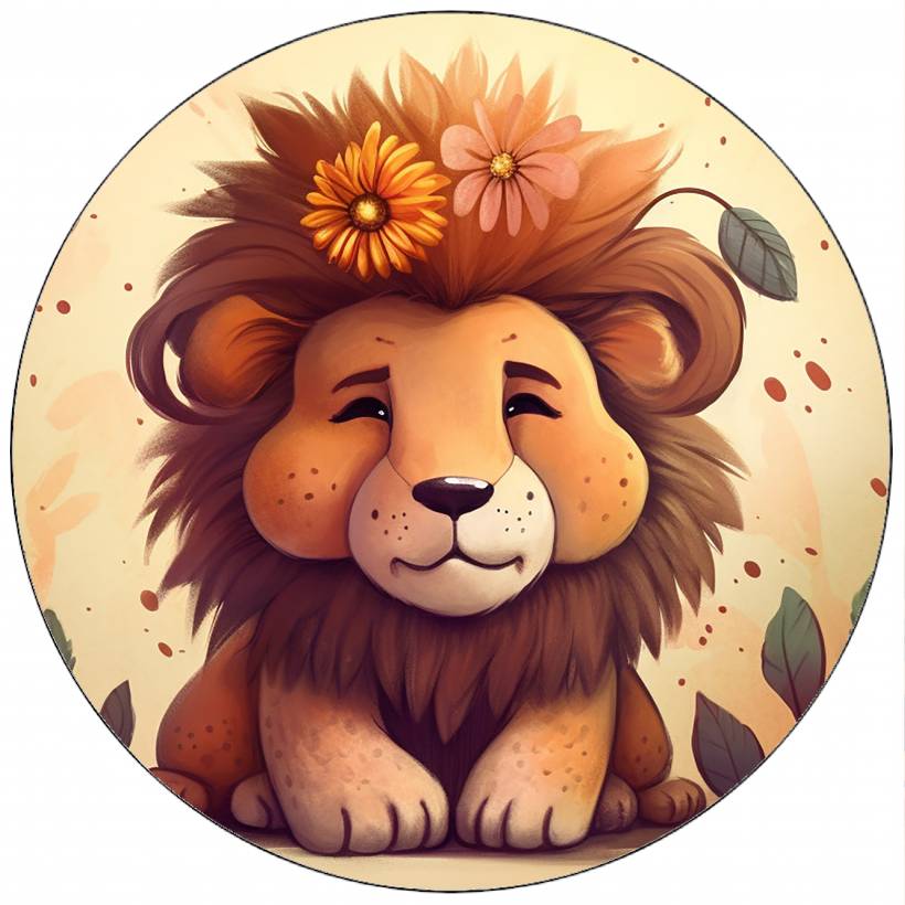 Essbares Papier-Löwe mit Blumen im Mähnenbereich 19,5 cm