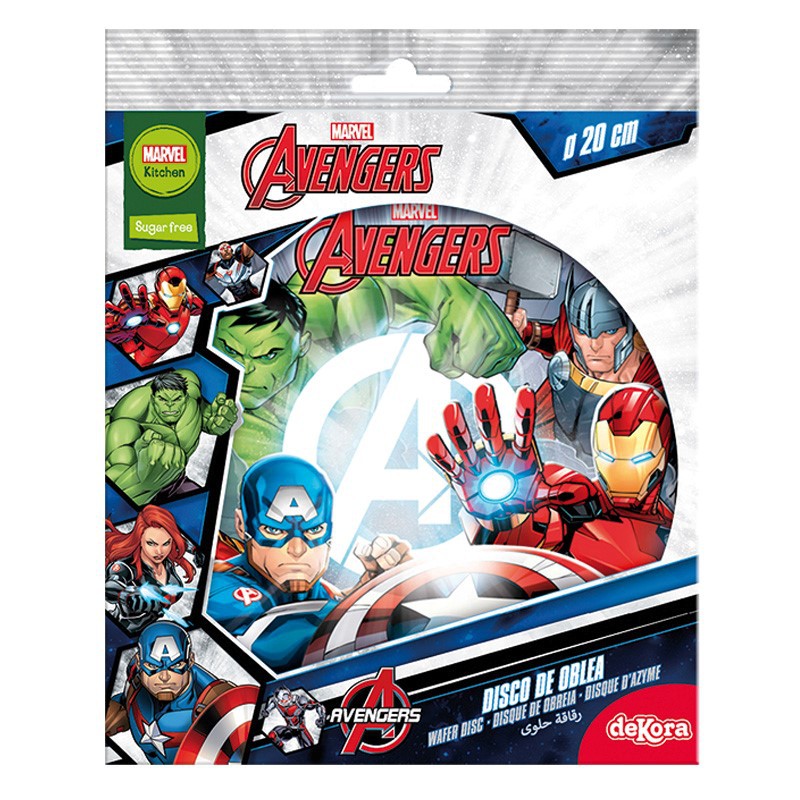 Stylvolle essbare runde Oblaten in Form essbaren Papiers für eine Torte mit Avengers-Motiv. Die Oblate wurde aus essbaren zertifizierten Lebensmittelrohstoffen hergestellt. Der Druck wurde mit Hilfe eines spezialisierten Druckers durchgeführt. Die Farben der Oblate können vom Grafikdesign leicht abweichen (bei der Verwendung auf Füllmaterial ist die Farbe der Oblate intensiver). Der Durchmesser des essbaren Papiers beträgt 20 cm. Den Boden gleichmäßig mit Schlagsahne oder Sahne bedecken und anschließend leicht auf die Oberfläche drücken. Zunächst muss die Oblate nicht perfekt haften, aber nach etwa 1 Stunde passt sie sich dem Gewicht an. Die Oblate sollte vor dem Servieren mindestens 2 Stunden auf dem Kuchen liegen. Wenn Sie Schokolade, Marzipan oder Plastilmaterial verwenden möchten, legen Sie es auf die mit neutralem essbarem Gel bestrichene Unterseite. Es sieht sehr schön aus, wenn das Gel auch oben auf der Oblate zur Fixierung verwendet wird. Dekorationen sind nicht geeignet für Gelée.