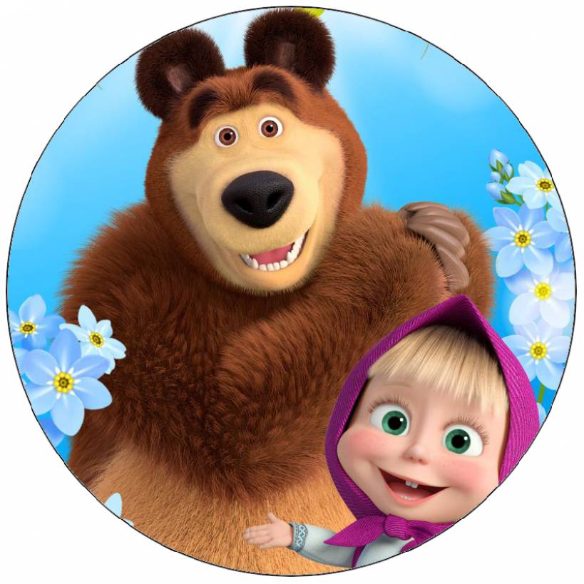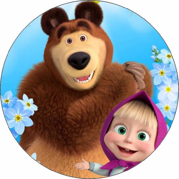 Essbare Papier Maša und der Bär mit Blumen 19,5 cm