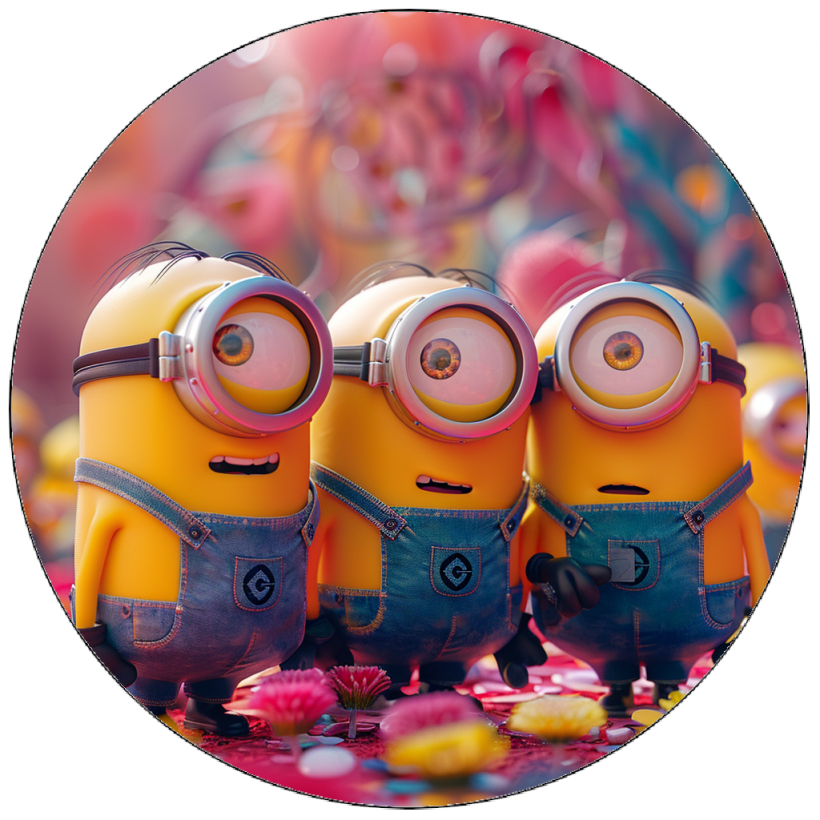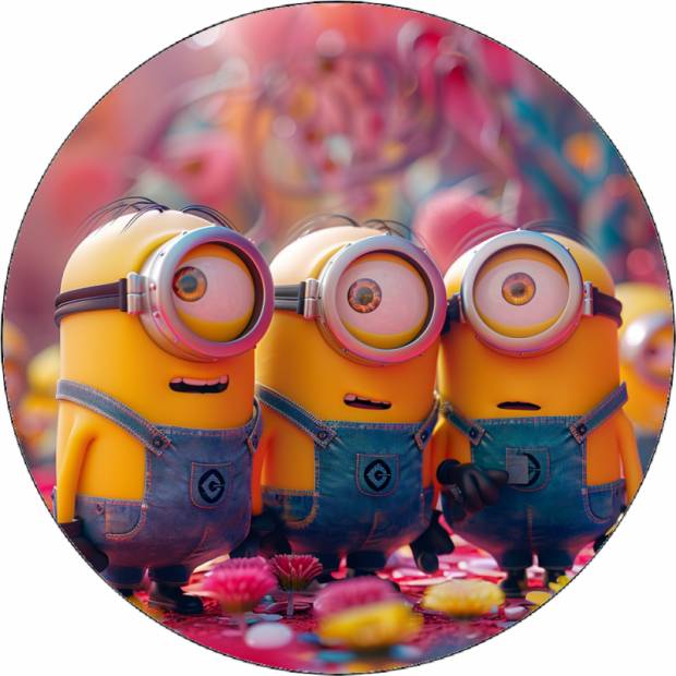 Essbares Papier Minions mit buntem Hintergrund 19,5 cm