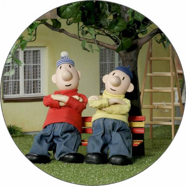 essbares Papier Pat und Mat auf der Bank 19,5 cm