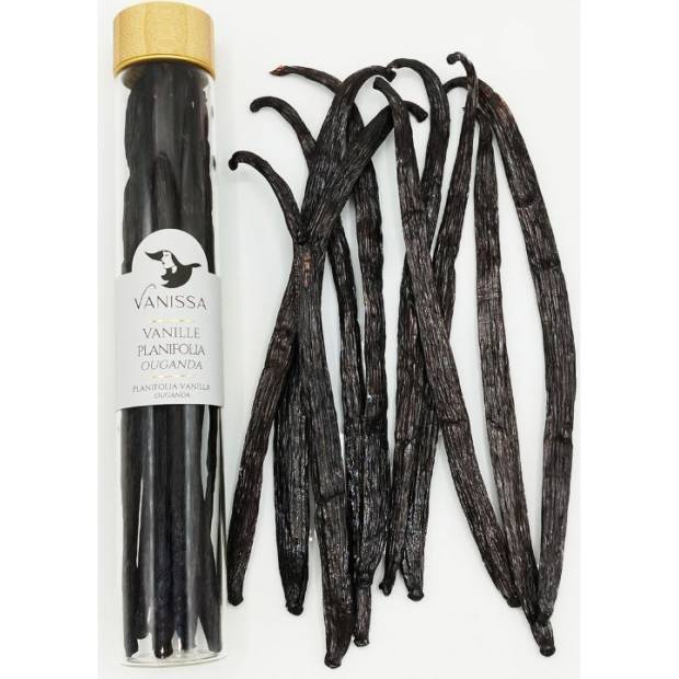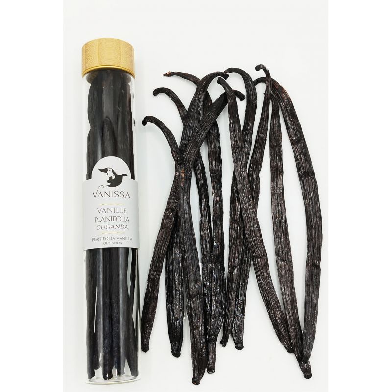 Diese ugandische Vanille stammt von der Planifolia-Orchidee, der gleichen Familie wie die Bourbon-Vanille aus Madagaskar.Ihr sehr hoher Vanillingehalt, der für die ugandische Vanille charakteristisch ist, verleiht den Schoten kräftige Vanille-, Kakao- und Wildnoten und macht sie zu einem Muss für Köche, die auf der Suche nach neuen Geschmacksrichtungen sind. Das äußerst nährstoffreiche Produkt zeichnet sich durch seine späte Ernte und den langsamen Raffinationsprozess aus, die die Entwicklung intensiver, fesselnder Aromen ermöglichen. Er ist vielseitig und liebt kühne Hochzeiten ebenso wie große Klassiker. In Kombination mit feiner Schokolade, exotischen Früchten, reichlich Sahne oder Spirituosen steht sie im Mittelpunkt und wertet die Zutaten um sie herum auf. Unsere ugandischen Vanilleschoten sind groß und fleischig, was ihnen mehr Körner verleiht als ihrem Vetter aus Madagaskar und eine größere aromatische Kraft verleiht. Sie sind in einem Glasröhrchen mit 10 Kapseln oder in Vakuum-Nachfüllbeuteln verpackt. Lagern Sie die Vanille an einem kühlen, trockenen und vor Licht geschützten Ort. Vanilleschoten verfallen nicht, aber wir empfehlen, sie innerhalb von 2 Jahren zu verbrauchen, um die volle Intensität ihrer Aromen zu bewahren.