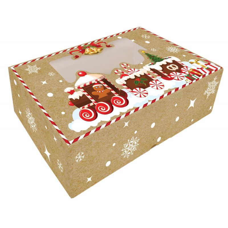 Verpackungsschachtel für Süßigkeiten faltbar mit Fenster 25x15x7 cm 1 Stück Weihnachtslokomotive