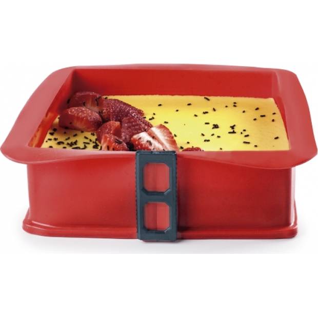 Silikonform Ibili hat eine rechteckige Form mit einer Glasbasis. Sie eignet sich für Kuchen sowie anderes süßes und salziges Gebäck. Hergestellt ist sie aus einem Silikonmaterial, wodurch sie langlebig und beständig über die Zeit ist. Aufgrund des Materials, aus dem sie gefertigt ist, ist sie nicht schwer, ganz im Gegenteil, sie ist sehr leicht und lässt sich gut handhaben. Sie kann sowohl für gefrorene Lebensmittel als auch für gebackene Gerichte verwendet werden. Sie verändert weder die Zusammensetzung des Essens noch dessen Geschmack. Es ist eine sehr hygienische und leicht zu reinigende Form, sie ist spülmaschinenfest. Erleichtert das einfache Herausnehmen der vorbereiteten Lebensmittel. Sie hat eine angemessene Größe von 25 x 25 cm. Durch die Basis lassen sich Desserts einfach dekorieren.