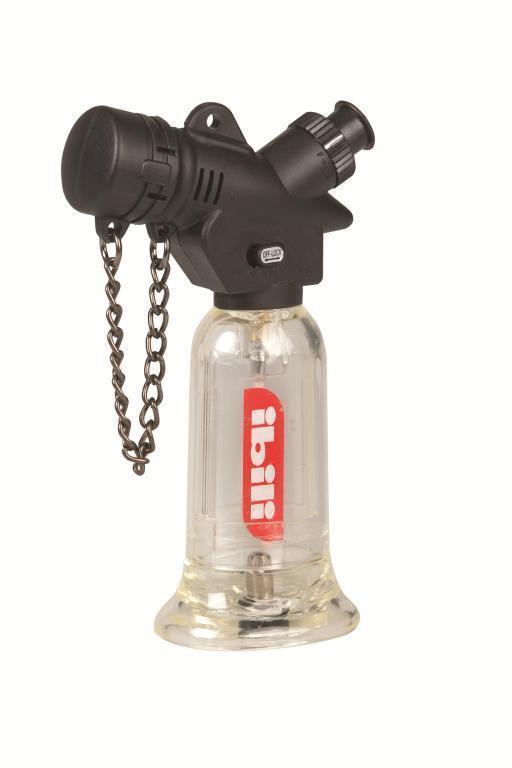 Flammenpistole mit einer Brenndauer von bis zu 50 Minuten. Die Pistole ist gasbetrieben. Die Flammenintensität kann geregelt werden. Das Füllteil ist aus transparentem Kunststoff, so dass Sie immer wissen, wie viel Gas in der Pistole ist.