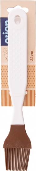 Pinselspachtel-Länge 22 cm, mit weißem Kunststoffgriff, eignet sich hervorragend zum Bestreichen von Fleisch mit Marinade, aber auch zum Backen süßer und herzhafter Kuchen, Strudel oder Gebäck. Hat braune Silikonborsten in einer Breite von 4 cm, beständig gegen Temperaturen von -40 °C bis +220 °C, der Kunststoffteil hält einen Temperaturbereich von -40 °C bis +100 °C aus.