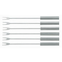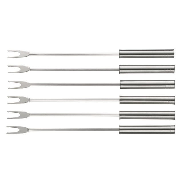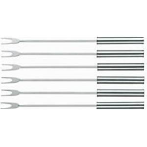 Ein Set aus sechs Fondue-Gabeln der deutschen Marke Kela. Sie sind ausschließlich aus hochwertigem Edelstahl gefertigt. Das Set ist die perfekte Ergänzung zu Fondue-Sets. Die Länge jeder Gabel beträgt 24,5 cm. Praktische Hilfe zum einfachen und sicheren Dippen von Obst in Schokolade oder Fleisch in die geschmolzene Sauce, usw.