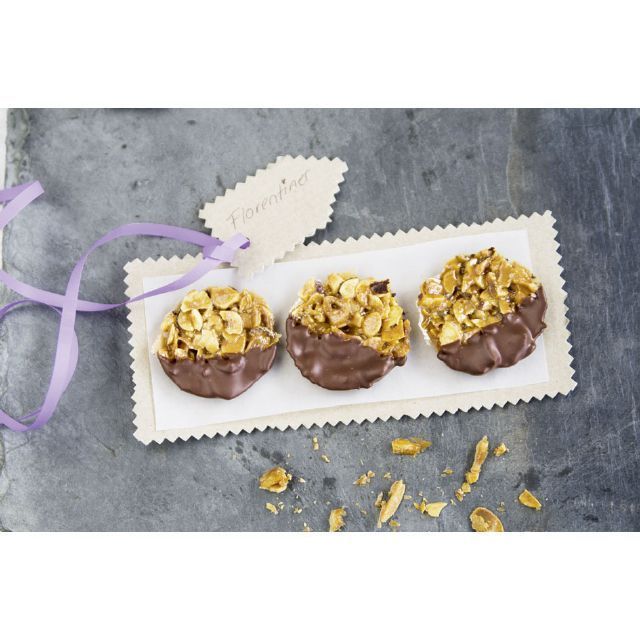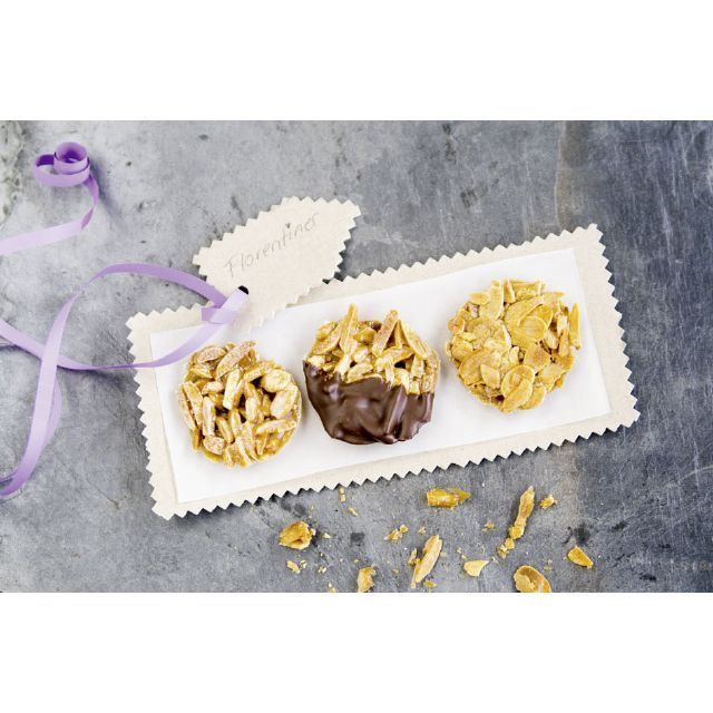 Backpapierblech mit einer antihaftbeschichteten Oberfläche, dank der Sie das Gebäck einfach lösen können. Es verteilt die Hitze gut, sodass die Florentiner gleichmäßig durchbacken. Nicht geeignet für die Reinigung in der Spülmaschine. Abmessungen der Form: 39 x 26 cm. Durchmesser eines Florentiner-Dreiecks? Actually florentýnka is Florentiner cookies. In German: Florentiner-Butter- etc. Better: Durchmesser eines Florentynka ist 5 cm.
