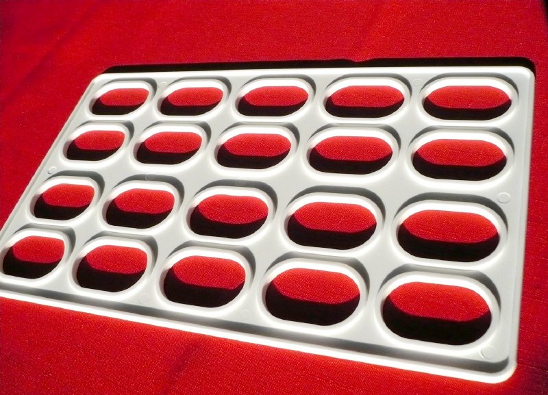 Kunststoffvorlage zur Zubereitung von zwanzig Laskonek mit einer Länge von 30 cm.