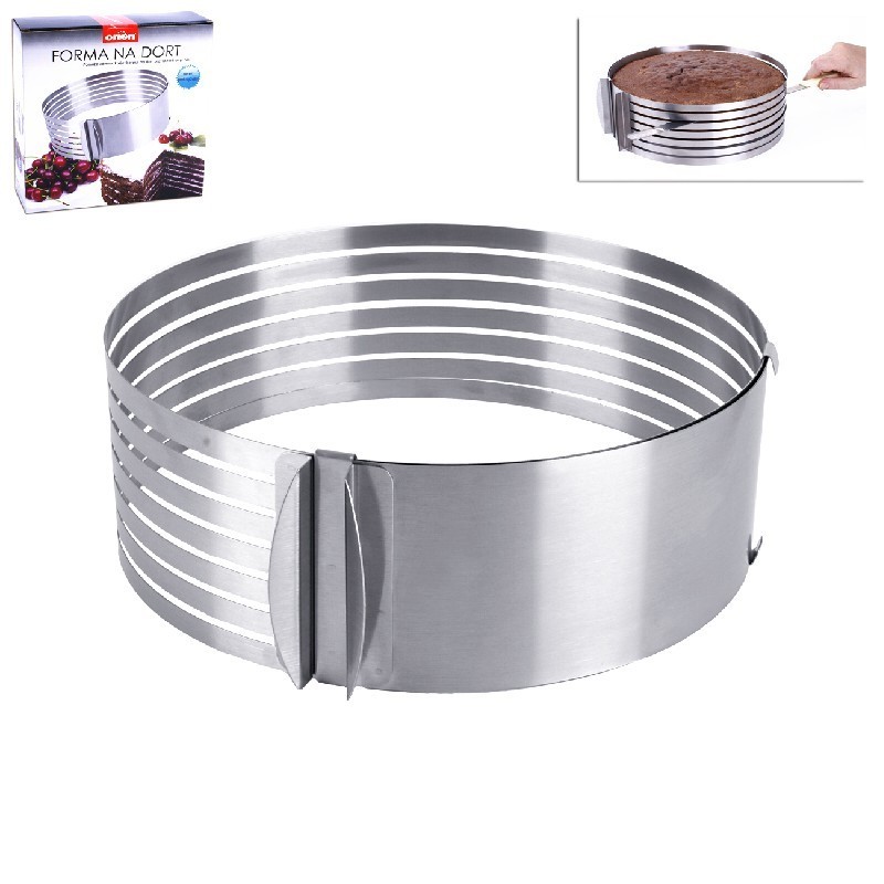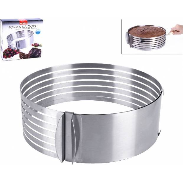 Dank des einfachen Schiebemechanismus kann die Form für Tortenschalen mit einem Durchmesser von 26 bis 31 Zentimetern verwendet werden. Nach dem Einsetzen lässt sich der Tortenkörper mit einem Messer oder einer Schnur auf gleicher Höhe entsprechend der Querschnitte leicht längs durchschneiden. Die Form ist aus hochwertigem Edelstahl gefertigt und spülmaschinenfest. Die Form muss mit Backpapier ausgekleidet werden (es handelt sich um einen Rand, der keinen Boden hat). Höhe: 8,5 cm.