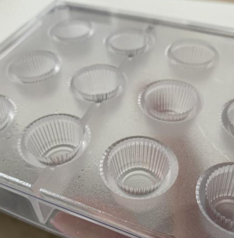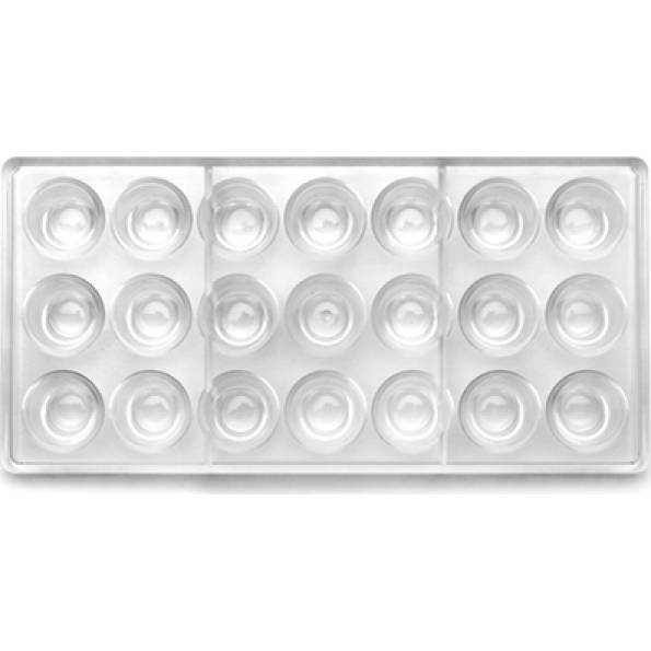 Klassische Schokoladenbonbons aus weißer, Milch- oder dunkler Schokolade herstellen Sie jetzt mit der Schokoladenform RIZADO von Ibili. Pro eine Füllung ergeben sich 21 Förmchen. Jeder Bonbon hat einen Durchmesser von 2,5 cm. Die Form muss von Hand gewaschen werden. Die Herstellung ist sehr einfach – Form mit dunkler oder weißer Schokolade füllen und in den Kühlschrank stellen. Nachdem sie fest geworden sind, nehmen Sie die Bonbons heraus.