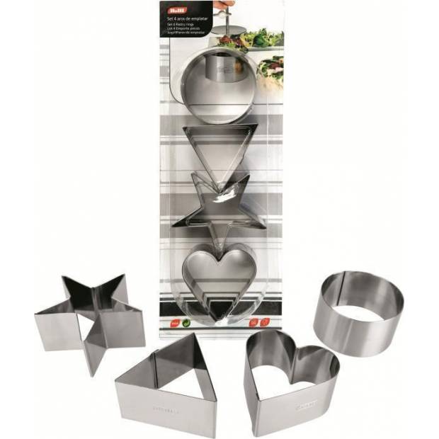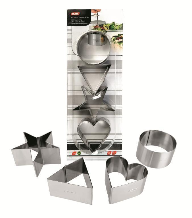 Fantasievolle und visuell unterschiedliche Ausschnitte aus Edelstahl. In einem Set erhalten Sie einen Stern, ein Dreieck, ein Herz und ein Rad.