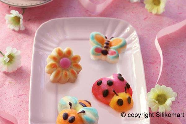 Beim Backen in dieser Form können Sie Ihrer Fantasie freien Lauf lassen. Sie erhalten sofort vier verschiedene Frühlingsmotive (Marienkäfer, Schmetterlinge, Blumen und Bienen) und unendlich viele Möglichkeiten, Ihren gebackenen Nachtisch zu dekorieren. Die Silikonform muss nicht eingefettet werden, das Gebäck lässt sich leicht lösen. So erzielen Sie stets perfekte Ergebnisse. Die Form ist bis zu 230°C verwendbar.