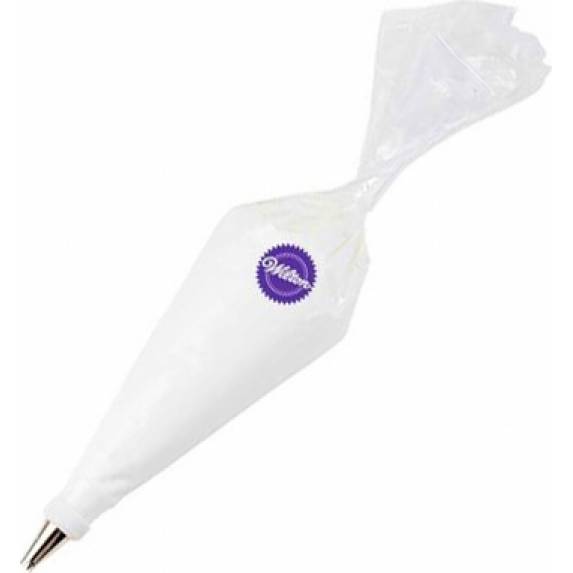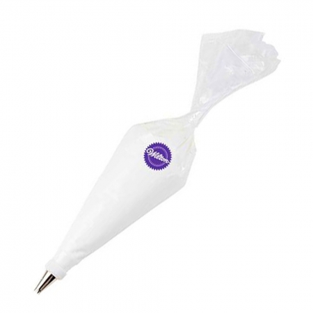 Wilton-Verbrauchsbeutel für Einmalgebrauch. Sie sind leicht, sehr stabil und aus elastischem Polyester gefertigt, der flexibel bleibt. Die Spritzbeutel werden ohne Adapter und Tüllen verkauft. Diese können separat in unserem Onlineshop erworben werden. Länge 40,6 cm. Im Pack 12 Stück.