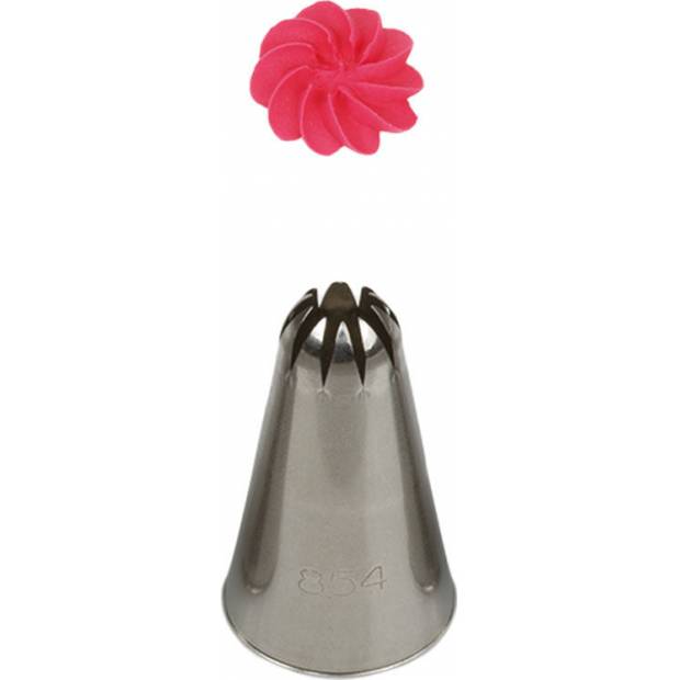 Metall-Tüllenspitze 854/2C, mit der Sie garantiert sehr präzise und einzigartige Dekorationen erstellen können. Die Spitze kann wiederholt mit einer Spritztüte verwendet werden. Sie ist aus Edelstahl gefertigt, Fettschlieren auf der Oberfläche gehören der Vergangenheit an. Nicht geeignet für die Spülmaschine.