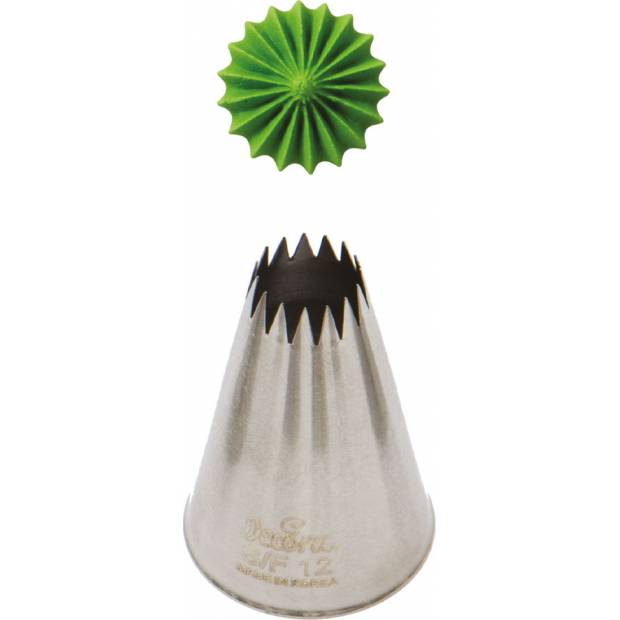 Die Metall-Gebäckspritzspitze S/F12 geschnitten ist aus erstklassigem Edelstahl gefertigt.