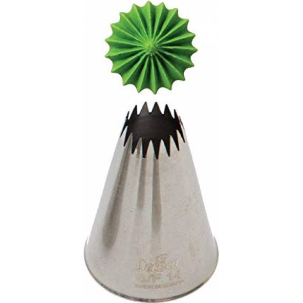 Die Metall-Gebäckspritzspitze S/F14 geschnitten ist aus erstklassigem Edelstahl gefertigt.