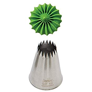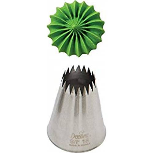 Der Metall-Verzieraufsatz für Tüllen S/F18 sorgt für eine präzise und einzigartige Dekoration. Die Spitze kann wiederholt mit einer Spritztüte verwendet werden. Sie besteht aus Edelstahl, Fettflecken hinterlassen keine Rückstände auf der Oberfläche. Keine geeignet für die Spülmaschine.