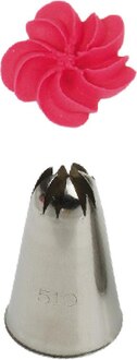 Metall-Aufsatz für Tortenzubehör, geschnitten 510/2F, garantiert präzente und einzigartige Dekoration. Die Spitze lässt sich wiederholt mit einem Spritzbeutel verwenden. Aus Edelstahl hergestellt, fettnichtverfärbend. Nicht spülmaschinengeeignet.