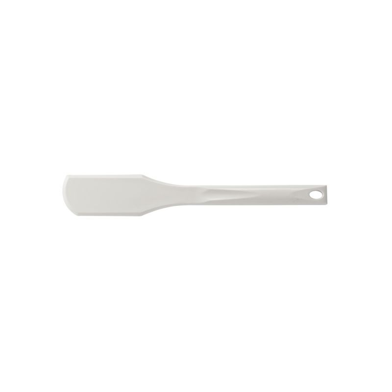 Feste, einteilige Spachtel aus weißem ABS-Material, beständig gegen Temperaturen bis 100 °C. Der Löffel ist glatt und extrem fest, die Spitze abgerundet und der Griff ergonomisch. Enthält eine Aufhängeöffnung. Geeignet zum Verteilen von Cremes, zum Rühren von Teigen, für Glasuren usw. Größe des Löffels: von 92x48 bis 99x58 mm.