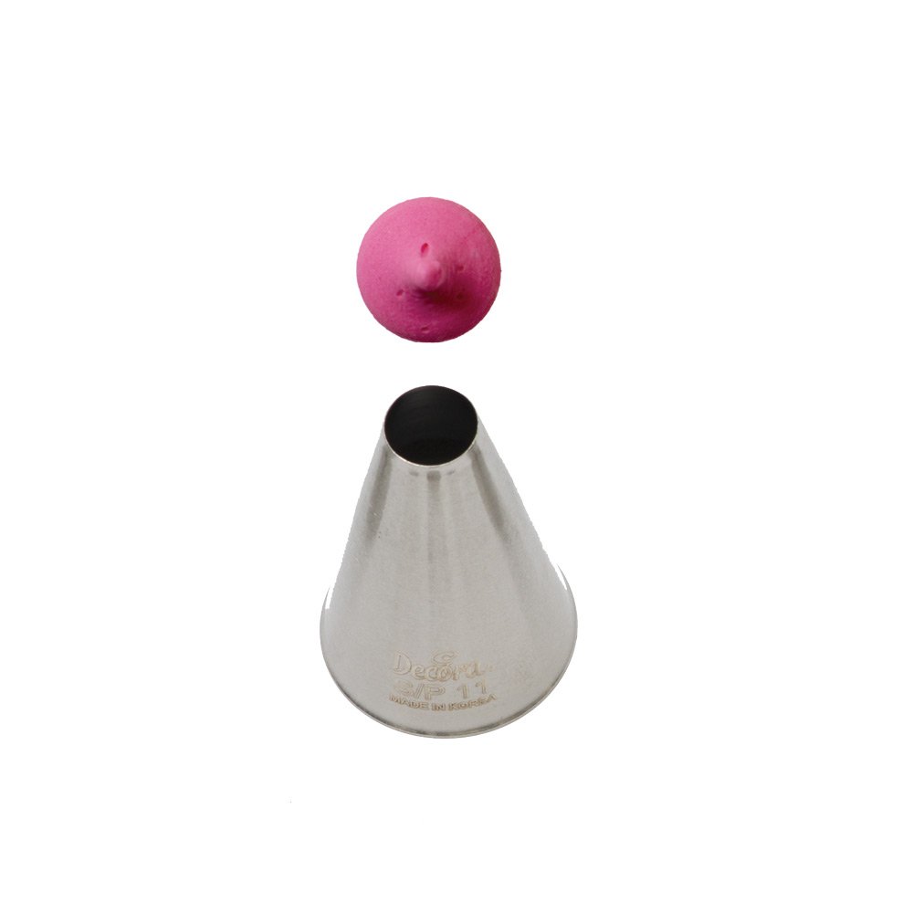 Der runde Metall-Verzierungsaufsatz S/P11 für Backwaren sorgt für eine präzise und einzigartige Dekoration. Der Aufsatz kann mehrfach zusammen mit einem Spritzbeutel verwendet werden. Er ist aus Edelstahl gefertigt und hinterlässt oberflächlich keine Fettflecken. Spülmaschinenfest ist er nicht.