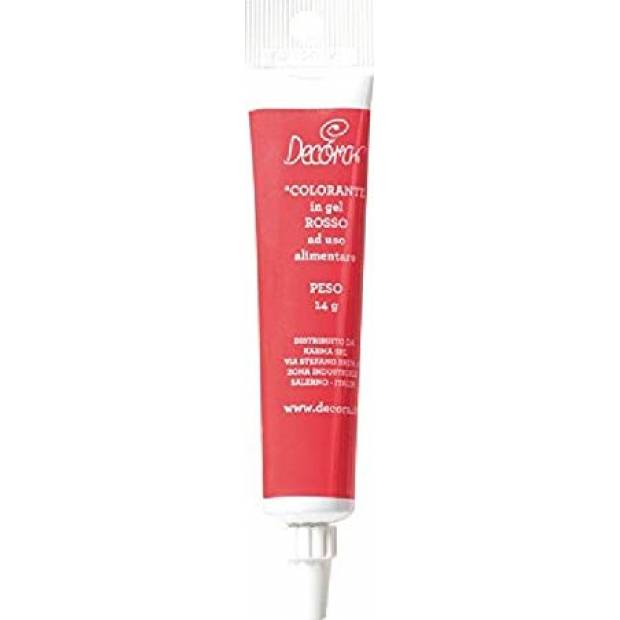 Rote gelierende Lebensmittel-Farbe für Teig, zum Färben von Schnee, Verzierungen oder Dekor- bzw. Überzugsmaterialien. Enthält natürliche Extrakt-Farbstoffe. Die Dosierung hängt von der benötigten Farbstärke ab. In der Packung 14 g.