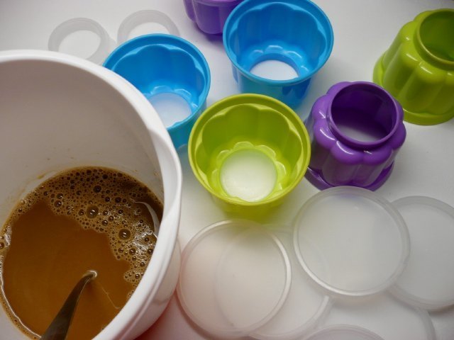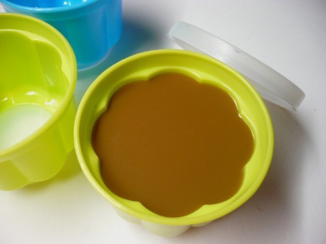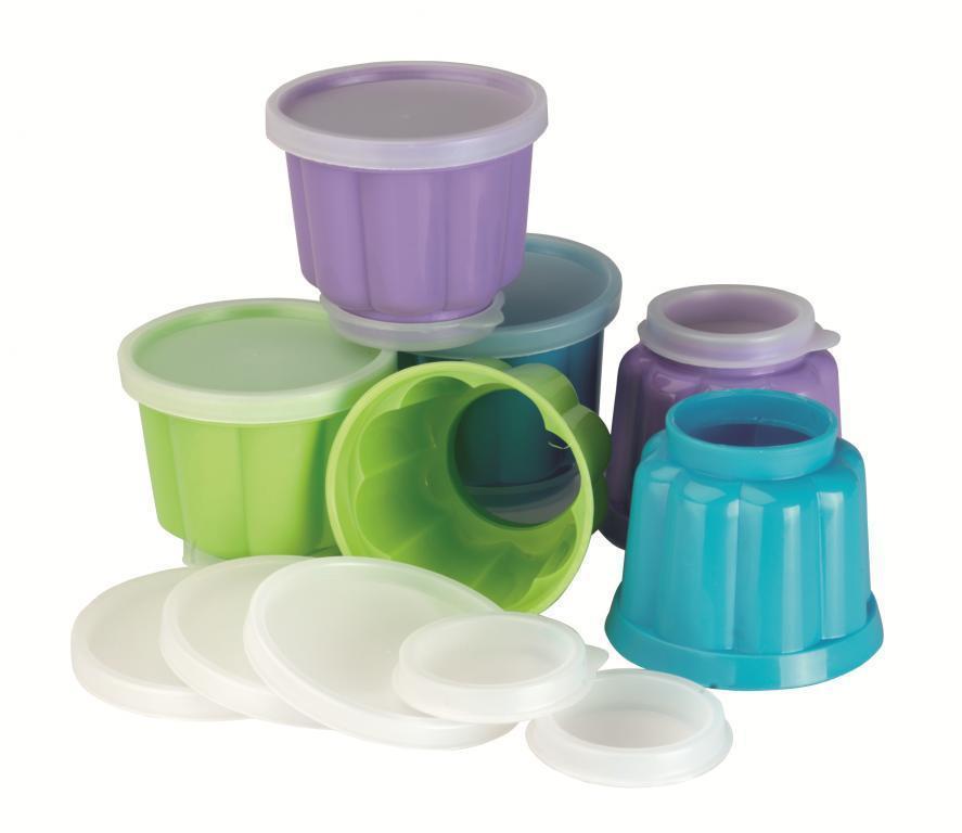 Bei diesen Babykohlen schätze ich sehr, dass sie von beiden Seiten verschlossen sind; im Kühlschrank übernimmt der Füllung keine Gerüche anderer Lebensmittel. Sie sparen auch Platz, da sie übereinander gestapelt werden können. Ebenso lassen sie sich gut transportieren, z. B. auch ins Büro, aber in den Sommermonaten in einer Thermotasche. Diese Gelatinedesserts müssen gekühlt werden. Der Inhalt lässt sich aus den Kunststoffbehältern sehr gut lösen. Auf dem Teller dekoriert jeder nach seiner Fantasie.