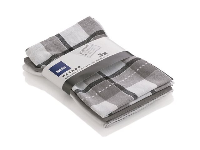 Set aus 3 Geschirrtüchern aus 100% Baumwolle. Die Tücher lösen keine Fasern, Qualität und Saugfähigkeit des Materials stehen im Vordergrund.