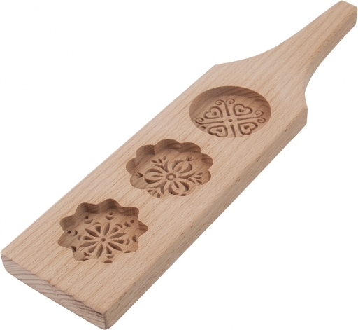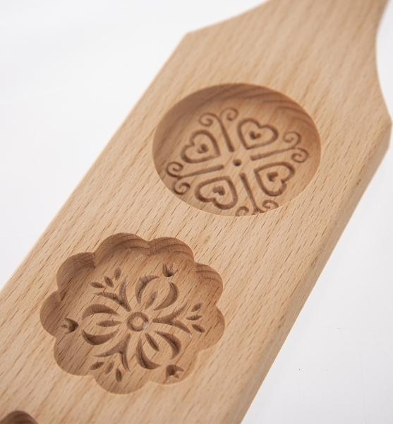 Sie kann nicht nur ein funktionaler Helfer sein, sondern auch eine hübsche Dekoration — nicht nur in einer rustikalen Zuhause oder auf der Hütte. Die Formenschnittstelle knüpft an traditionelle, altdeutsche, von Hand geschnitzte Formen für Lebkuchen an.