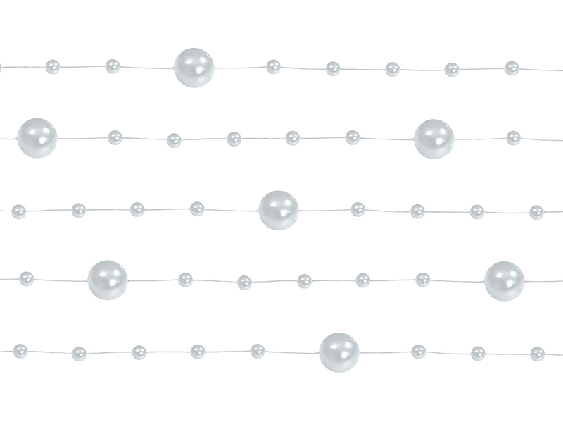 Die schöne Perlengirlande kann unter anderem für die Dekoration eines Partytisches, für Blumen oder Kerzen verwendet werden. Die Länge der Perlengirlande beträgt 1,3 Meter. 5 Stück in der Packung.