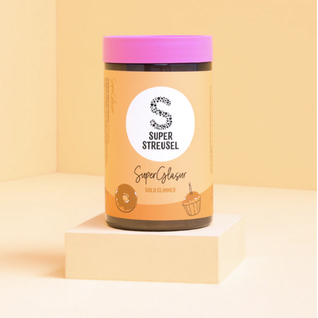 Kleine magische goldene Glasur mit funkelnder Wirkung, die mit ein paar Tropfen Wasser zu einer bunten dekorativen Unterhaltung für alle Desserts wird. SuperGlaze ist ein Pulver, das man einfach kalt mit etwas Flüssigkeit mischt. Jetzt haben Sie eine bunte Glasur zum Dekorieren von Zuckerwerk, Kuchen und Muffins. Sie lässt sich leicht mit einem Konditor- Pinsel oder direkt mit dem Löffel auftragen. Danach Streusel hinzufügen und in wenigen Sekunden ist Ihr Gebäck einzigartig. Einfacher geht es nicht! SuperTip: Mischen Sie Ihre SuperGlaze mit verschiedenen Frucht-Pasten – so verleihen Sie SuperGlaze völlig neuen Geschmack. Anleitung: Mischen Sie das Pulver im Verhältnis 4 Teelöffel Mehl mit 1 Teelöffel Wasser und rühren Sie kräftig, bis sich das Pulver vollständig aufgelöst hat. Bestreichen Sie damit das Gebäck, bestreuen Sie es und fertig! Sollte der Zuckerguss dicker sein? Mehr Pulver hinzufügen und umrühren. Oder lieber dünner? Geben Sie weitere Tropfen Wasser hinzu.