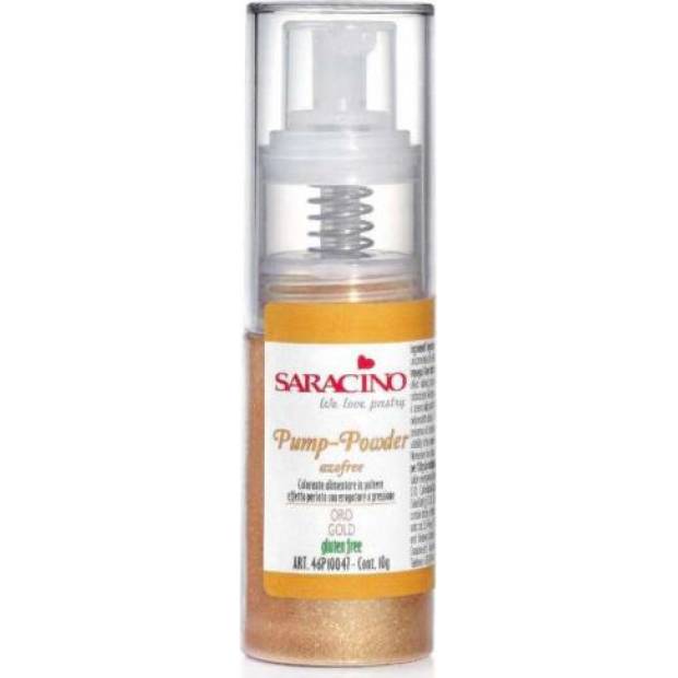 Stäubende Lebensmittelfarbe in Sprayform ist ein goldener, glutenfreier Spritzpulver mit einfacher Anwendung. Sprühen Sie diese spritzbare Lebensmittelfarbe auf die gewünschte Oberfläche, die Sie dekorieren möchten. Ideales Produkt zum Verzieren von Schokoladen, Zuckerwaren, Kakaobutter, Mandelpaste usw. Es handelt sich um eine Neuheit in der Backbranche, praktisch ein spritzbares Lebensmittelfarbstoffpulver, verpackt in einer speziellen Verpackung, die es ermöglicht, das Produkt zu versprühen und so fantastische glitzernde Effekte zu erzeugen.