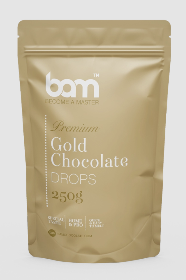 BAM GOLD-Schokolade ist eine prestigevolle weiße Schokolade, angereichert mit Karamell und karamellisiertem Milch. Ihr Geschmack ist deutlich karamellartig, mit extrem komplexen Noten von Karamell, Nuss, Sahne und einer zarten Prise Salz. Der goldene Farbton dieser BAM-Schokolade wird eine Reihe von wunderbaren Desserts schaffen. Diese Schokolade ist in kleine Tropfen geformt, was ein schnelles und gleichmäßiges Schmelzen ermöglicht. Daraus lassen sich verschiedene Cremes, Schäume, Glasuren, Ganache, Eis, Kekse und verschiedene Füllungen herstellen. BAM Gold-Schokolade ist glutenfrei. BAM Gold Chocolate (250 g) verzaubert Sie mit ihrem sanften goldenen Farbton. Ihr Geschmack ist das Ergebnis zweijähriger Entwicklung und sorgt dafür, dass auch die anspruchsvollsten Schokoladenliebhaber zufrieden sind. Sie kann für verschiedene Zwecke verwendet werden, wie Puddings, Glasuren, Cremes, Formen und Dekoration. BAM Chocolate ist geschaffen für alle Dessertliebhaber, für Hobbyköche zu Hause und erfahrene Konditoren, die ihren Desserts den perfekten, erstklassigen Chocolade-Touch geben wollen.