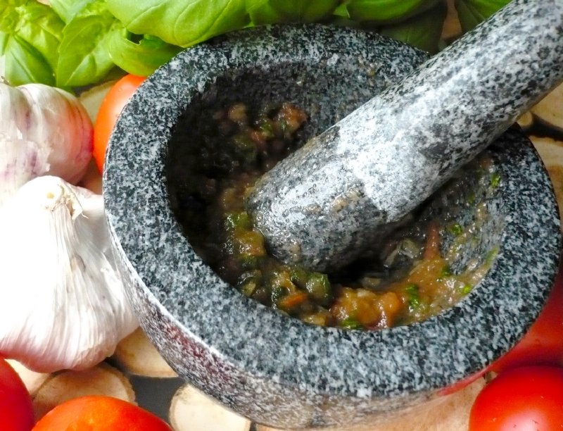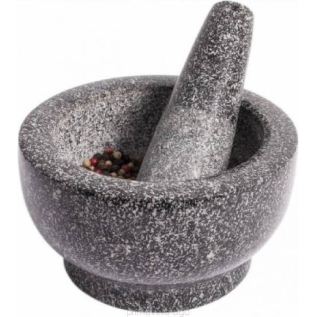 Massiver Mörser aus natürlichem Granit ist ideal sowohl zum Zerkleinern von Gewürzen und Kräutern als auch zur Zubereitung von Pesto und Dressings. Das natürliche Material nur von Hand reinigen. Der Durchmesser des Mörsers beträgt 13 cm, die Höhe 8 cm.