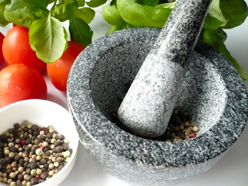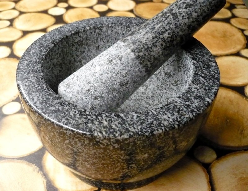 Der Mörser besteht aus Quarz oder Granit. Für eine bessere Funktionalität ist der Innenteil rau gemacht, damit man besser damit arbeiten kann. Das Gesamtvolumen beträgt 250 ml. Aufgrund des Materials, aus dem er gefertigt ist, ist er schwerer, doch das ist eine seiner Stärken. Auf der Unterlage rutscht er nicht und liegt gut in der Hand. Ebenso lässt er sich sehr gut pflegen. Obwohl wir verschiedene elektrische Küchenhelfer wie Mühlen, Zerkleinerer und Mixer besitzen, sollte der Mörser in jeder Küche einen festen Platz haben. Er löst und entfaltet absolut wunderbar das Aroma von zerstoßenem Gewürz und zerdrückten Kräutern. Das Gewürz wird zu Stückchen oder feinem Pulver zerrieben, je nach unserem Bedarf. Der Geschmack der Speise ist danach deutlich besser, mit intensiverem Aroma. Am häufigsten wird wohl ganz Pfeffer zerstoßen, aber wir können jedes Gewürz zerstoßen. Zum Beispiel Kümmel, Koriander und Fenchel für das hausgemachte Brot. Es reicht, die Oberfläche leicht zu lösen, und Sie riechen das wunderbare und intensive Aroma, das sich in der ganzen Küche entfaltet. Der Mörser ist auch bei der Zubereitung von Lebkuchengewürz nützlich, er zerdrückt Senfkörner usw. Sie können auch verschiedene Gewürzmischungen für verschiedene Zwecke je nach Bedarf mischen. Wir verwenden ihn auch zum Zerdrücken von Knoblauch, Kräutern bei der Herstellung von Marinaden, Pesto, Dressings und Kräuterbutter. Ich bin mit diesem Mörser sehr zufrieden und glaube, dass er niemanden enttäuschen wird. M.F.