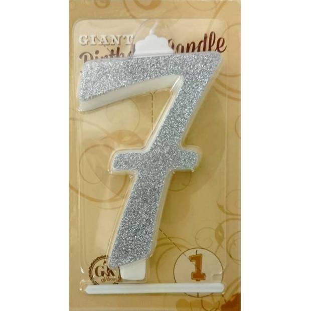 große silberne Kerze Nummer 7 6428