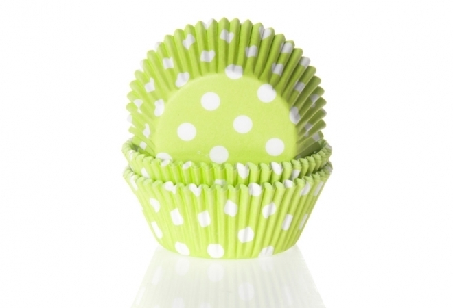 Set von 50 hübsch aussehenden Backförmchen für einfaches und schnelles Zubereiten von Mini-Desserts. Förmchen in Grün und Weiß mit Punktendekor.
