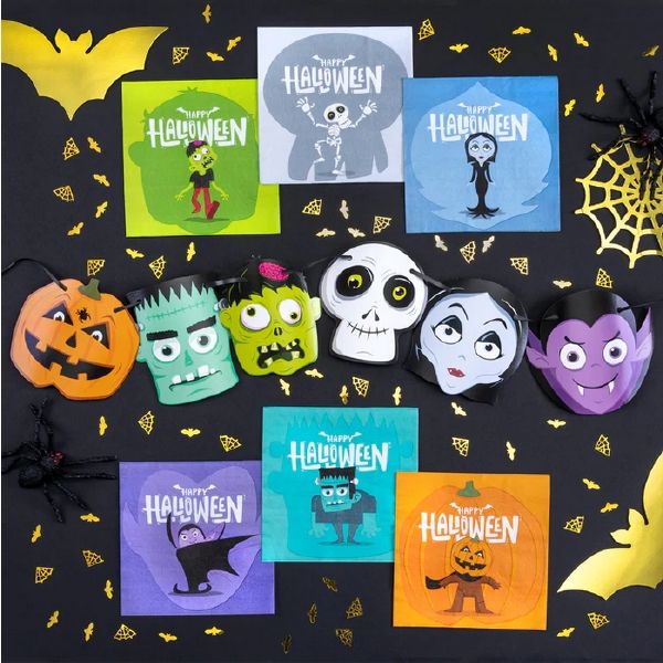 Papierservietten Halloween-Monster. Maße 33 x 33 cm, im Packung 10 Stück.